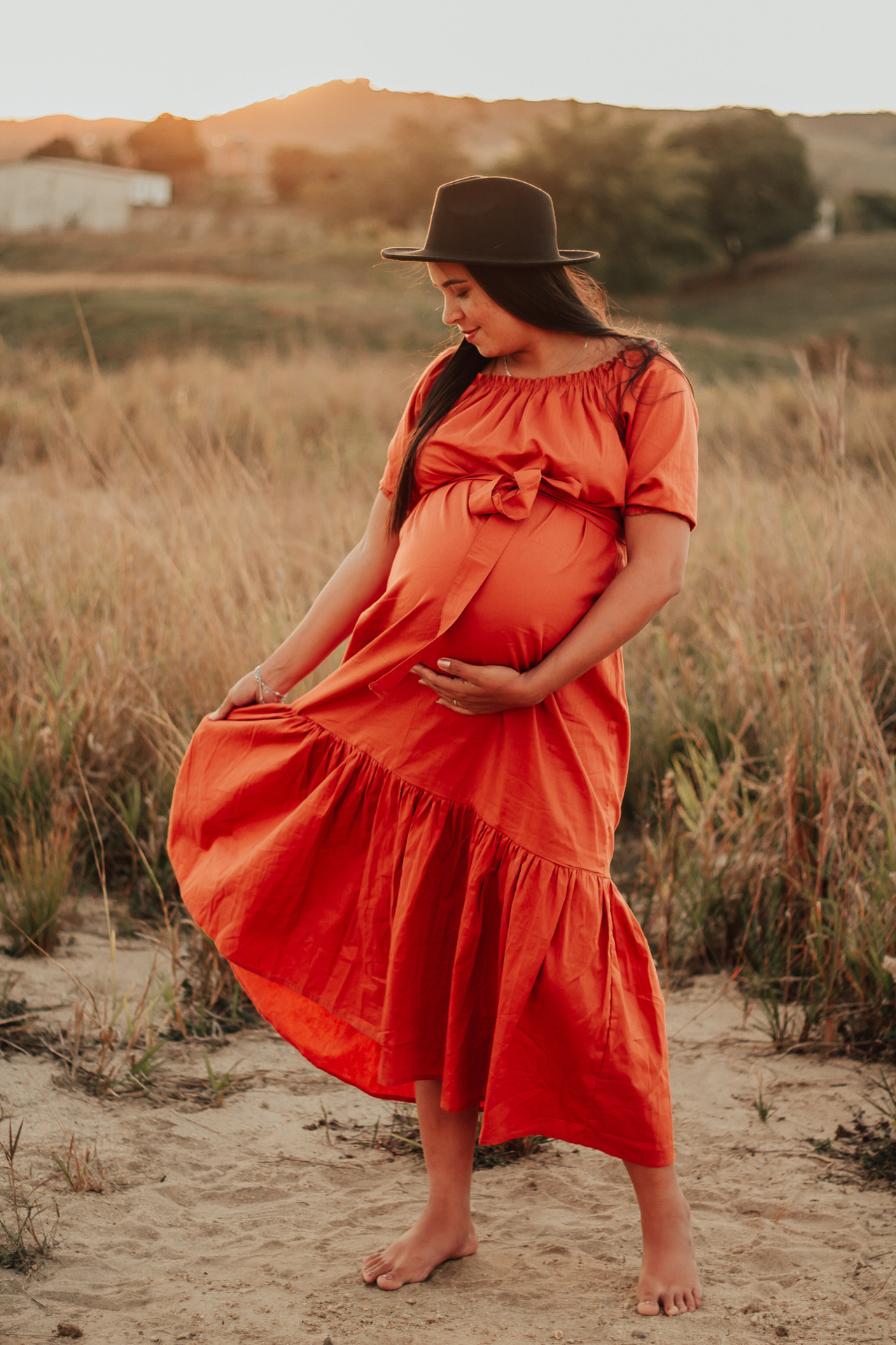 Alguns fotógrafos, como nós, disponibilizam roupas para o ensaio gestante, vestido com abertura na barriga por exemplo é um modelo muito procurado pelas mamães!